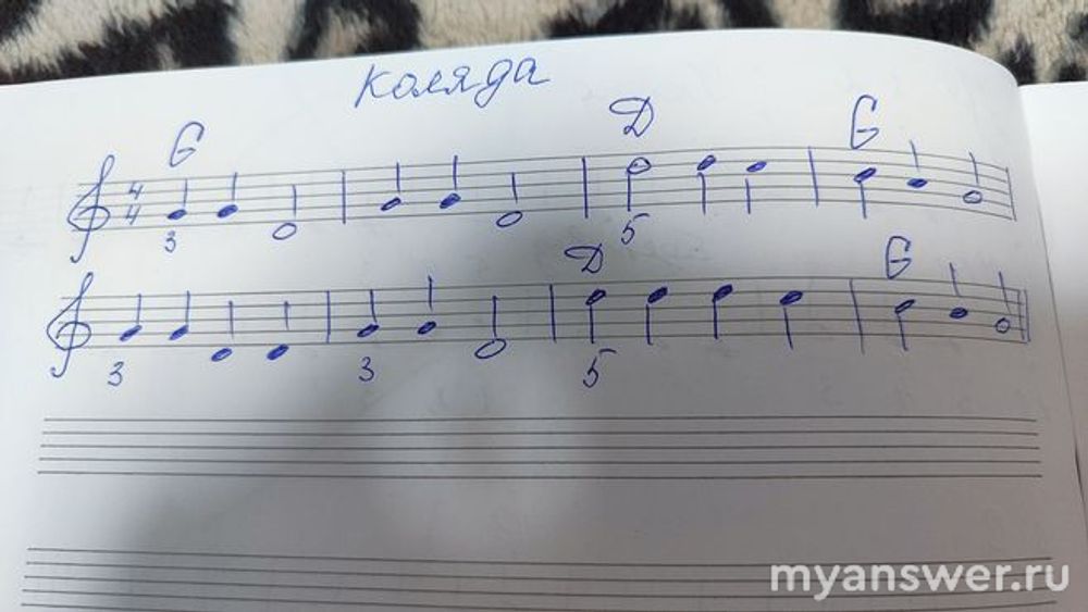 Не хватает ключевого знака фа-диез, так как тональность этой колядки, очевидно, соль-мажор. Латинские буквы над нотным станом - тональность аккордов для аккомпанемента. Цифры снизу, видимо, номер пальца для исполнения на клавишах.