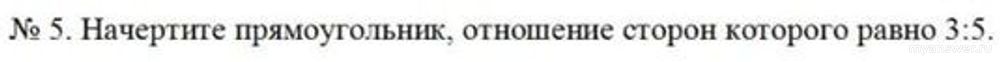 Тебе наверное известно, что противоположные стороны прямоугольника равны по длине, а величина внутренних углов прямоугольника 90 градусов? В таком случае начерти прямоугольник с размером двух противоположных сторон 5 см., а другие оставшиеся стороны по 3 см. В этом случае будет соблюдено отношение сторон 3:5 или наоборот 5:3, что вообщем не имеет значение. Можно изменить длину сторон, важно при этом умножать длины сторон прямоугольника ( или делить их) на одинаковое число. Успехов в учёбе!