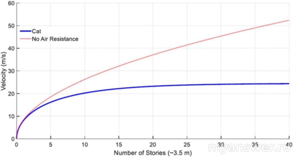 Я понимаю верно, что скорость не может постоянно увеличиваться, и достигнув земли скорость будет такой же, как 14 или 75 этаж? У меня кошка прыгнула и потом была здорова, правда, с 14. Или же с высоты бОльшей она всё-же быстрее бы разогналась?