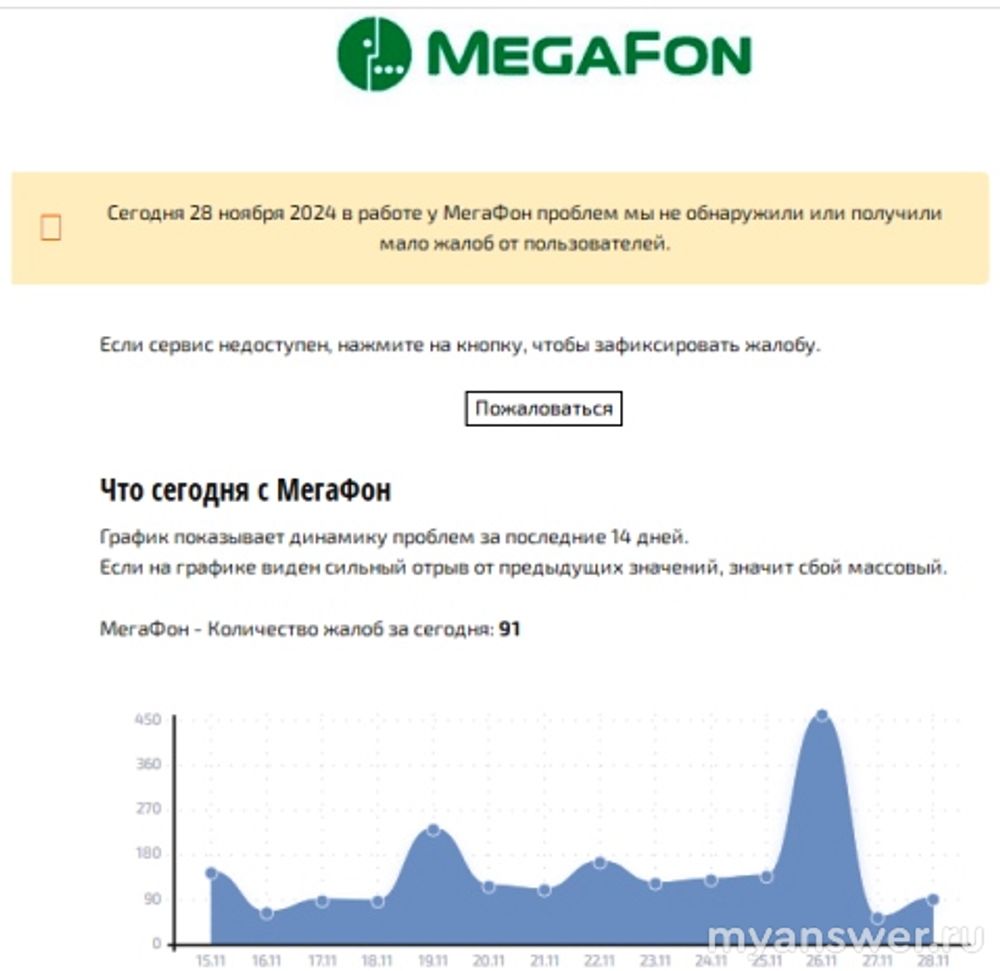В некоторых регионах не работает Мегафон 28 ноября 2024 года.