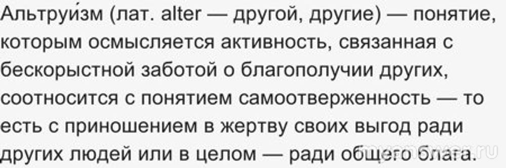 Нужно сразу говорить о двух вещах об эгоизме и альтруизме. Напомню определение из словаря: