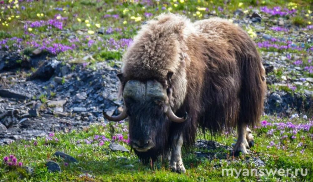 Овцебык - удивительное животное, которое похоже, то ли на обросшего густой шерстью быка, то ли на огромного барана( или овцу).