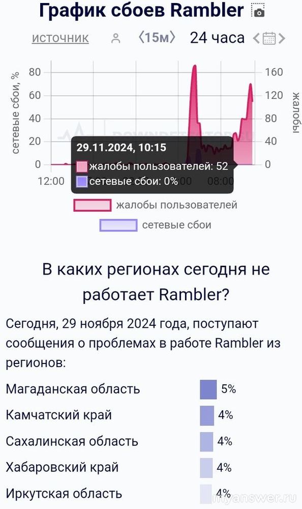 По состоянию сервиса Рамблер поступают жалобы от пользователей 29.11.2024 года.