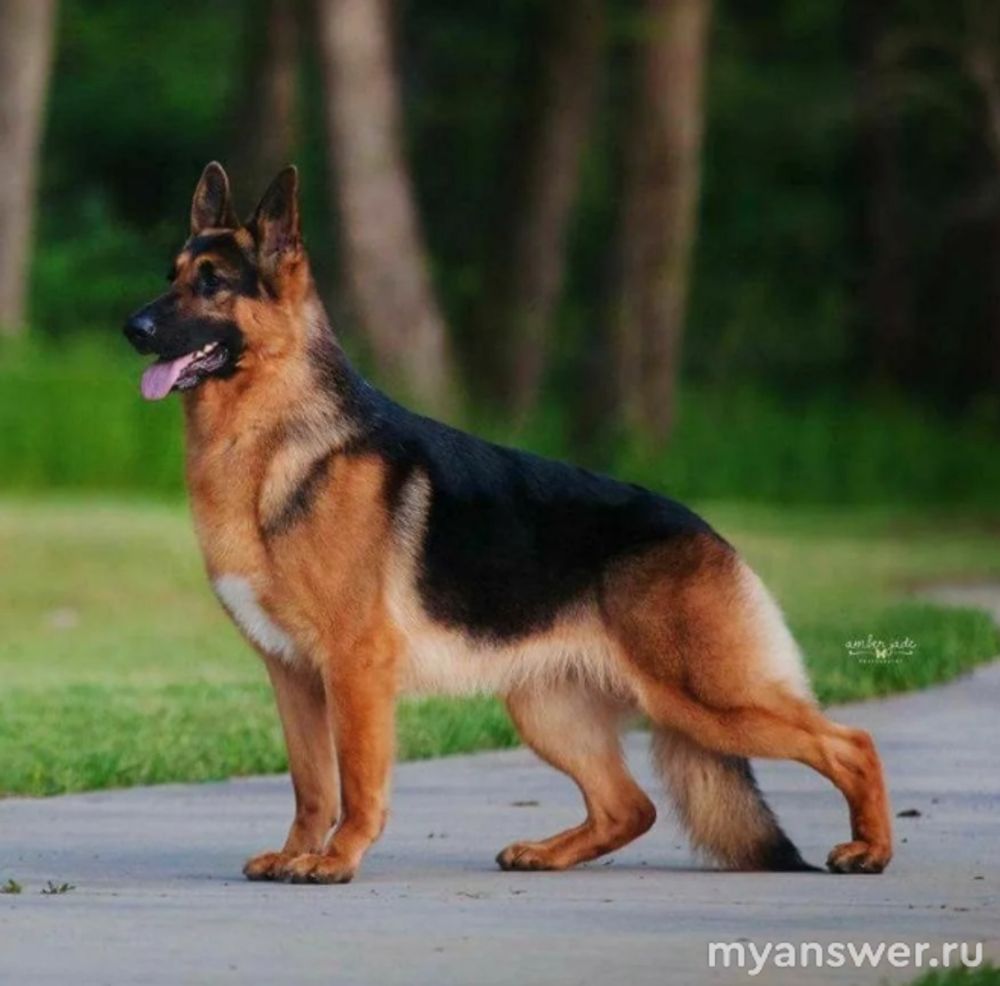 выглядит немецкая овчарка вот так, хотя есть и с более длинной шерстью: