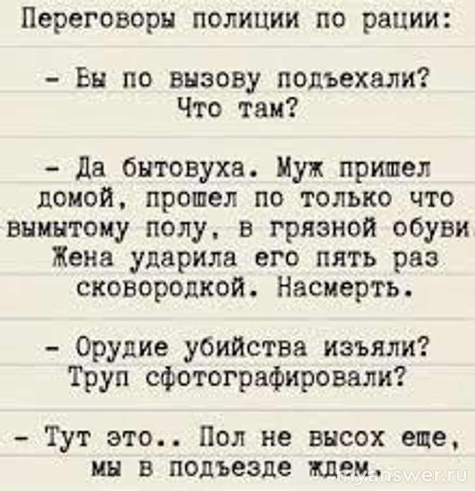 Не вызовом полиции, ни разводом(если это супруги), ни дракой, наконец... Убийством.
