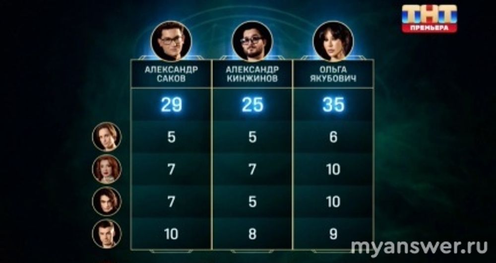 И хотя Ольга получила от Ильи 6 балов, все равно она лидировала с 35 балами. И сразу стало очевидным, что дальше пройдет Саков. Так как Влад поставил ему за непройденное задание 10, а Ольге за пройденное, хотя и наполовину только 9.