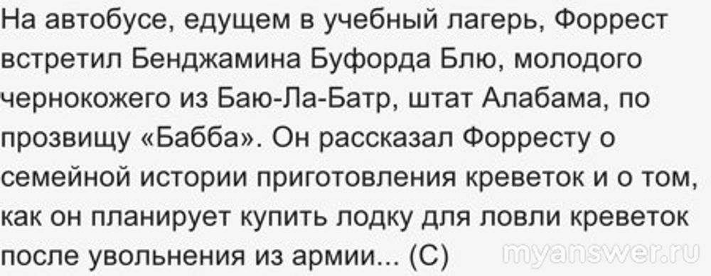 Но за время службы он успел рассказать Форресту все, что знал о креветках, а знал он очень много