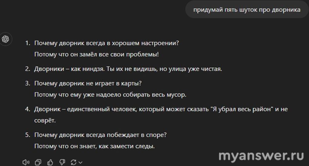 Кстати, можно пользоваться помощью ChatGPT, он весьма хорош в таком "стандартном" юморе.
