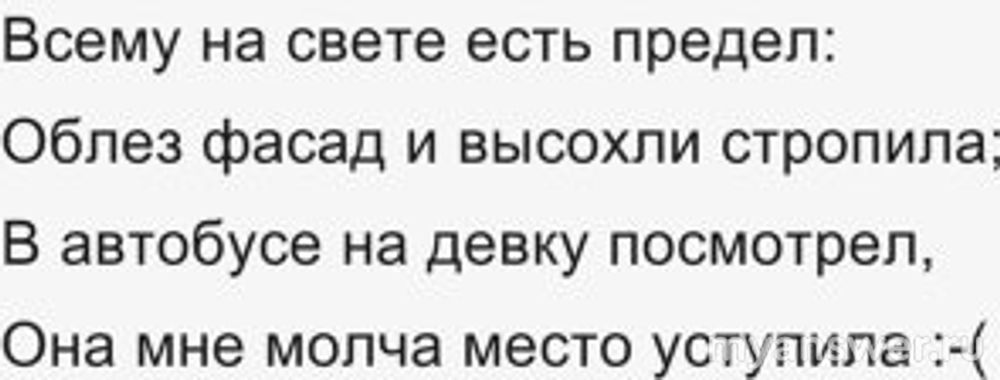 Видимо нужно как-то по-молодёжнее одеваться и надеть футболку с другим стихотворением того же автора: