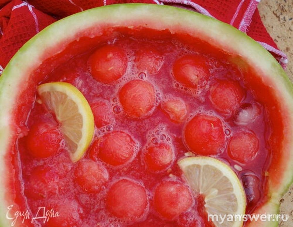 Фруктовый напиток который готовят внутри арбуза, лишенного мякоти, 6 букв, как называется?