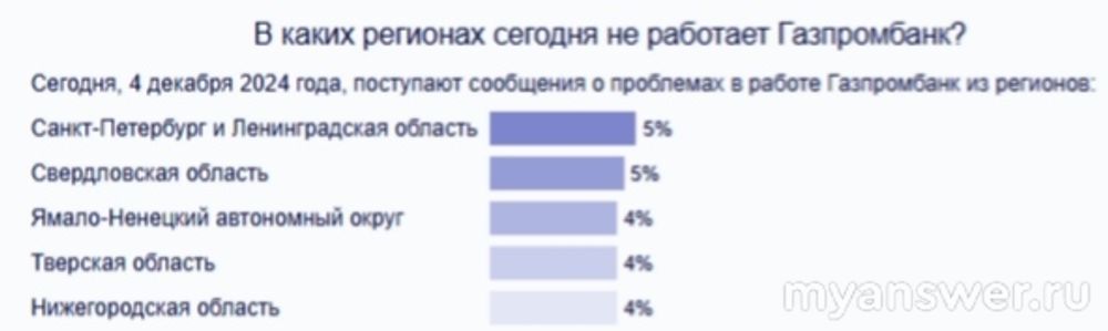 Все верно данные сервисы Газпромбанка работают с большими нареканиями со стороны клиентов. Четвертого декабря люди стали жаловаться, что не могут воспользоваться личным кабинетом не через сайт, ни через мобильное приложение. Не лишним будет сказать, что перебои в их работе идут еще со вчерашнего дня, когда более ста человек рассказали об этом. Пик сегодняшних жалоб пришелся на девять тридцать утра по Москве, когда сразу пятьдесят человек о неполадках заявили. География жалоб от Санк-Петербурга до Нижнего Новгорода. Выглядит следующим образом:
