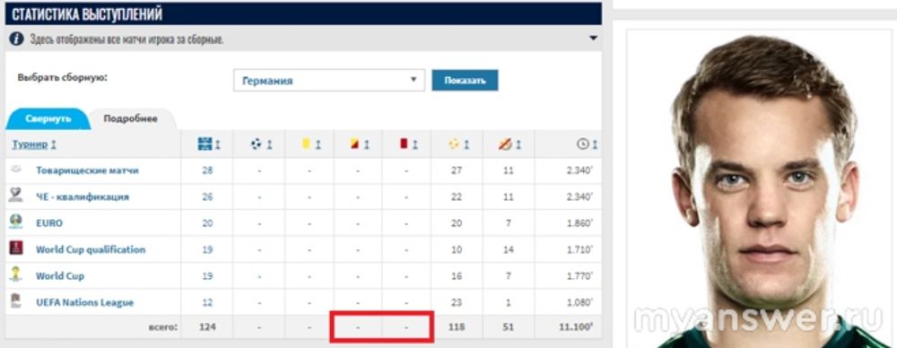 Уже точно можно сказать легендарный немецкий 38-летний вратарь мюнхенской "Баварии" Мануэль Нойер всегда славился репутацией джентльмена не только в немецкой Бундеслиге, но и в международных соревнованиях. До вчерашнего дня согласно авторитетному порталу Transfermarkt знаменитый ветеран сыграл за сборную Германии 124 матча и не получил в них ни одной не только красной, но даже желтой карточки;