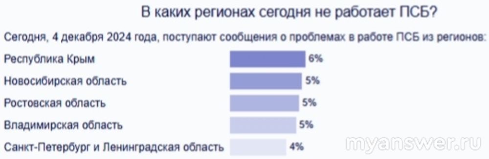 Думаю, клиентов банков вряд ли можно удивить некорректной работой различных его сервисов. Рано или поздно люди сталкиваются с подобного рода проблемами. Четвертого декабря они пожаловались на перебой в работе сайта и мобильного приложения Промсвязьбанка. Не открывается сайт, не получается в личный кабинет войти, сервис требует установку какого-то дополнительного плагина. Пик подобных жалоб пришелся на двенадцать часов пятнадцать минут по московскому времени. Когда сразу пятьдесят три человека пожаловались. География жалоб от Ленинградской области и Республики Крым и до Новосибирской области.