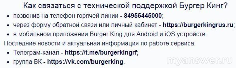Если это не помогает и сбой носит длительный характер, следует обратиться в техподдержку Бургер Кинг по номеру: 84955445000.