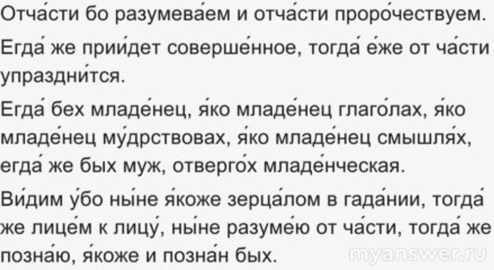 Пояснением к этому (13-му) стиху апостола Павла может быть стих 10: