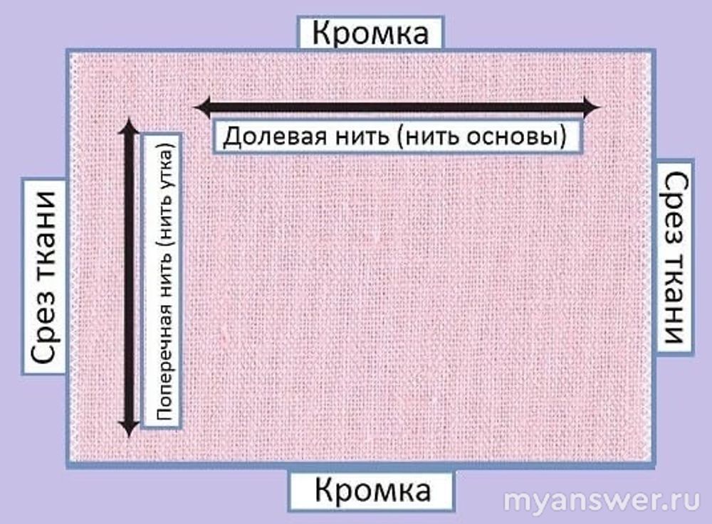 Иногда на отрезках ткани нет кромки и тогда необходимо самостоятельно определять долевую нить.