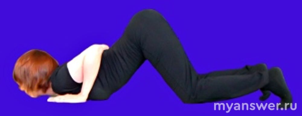Поза 1: Аштанга Намаскара (поза восьми точек или поза гусеницы). В этой позе нужно опереться на пол подбородком, грудью, ладонями, коленями и пальцами ног.