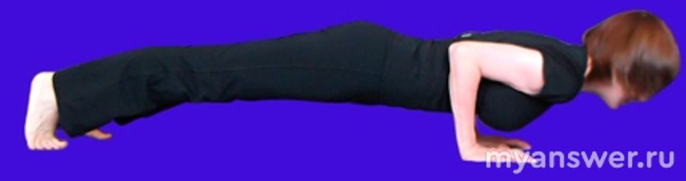 Что дает эта поза: она очень хорошо укрепляет трицепсы и мышцы спины и пресса, что также важно для выполнения Ганда Бхерундасаны.