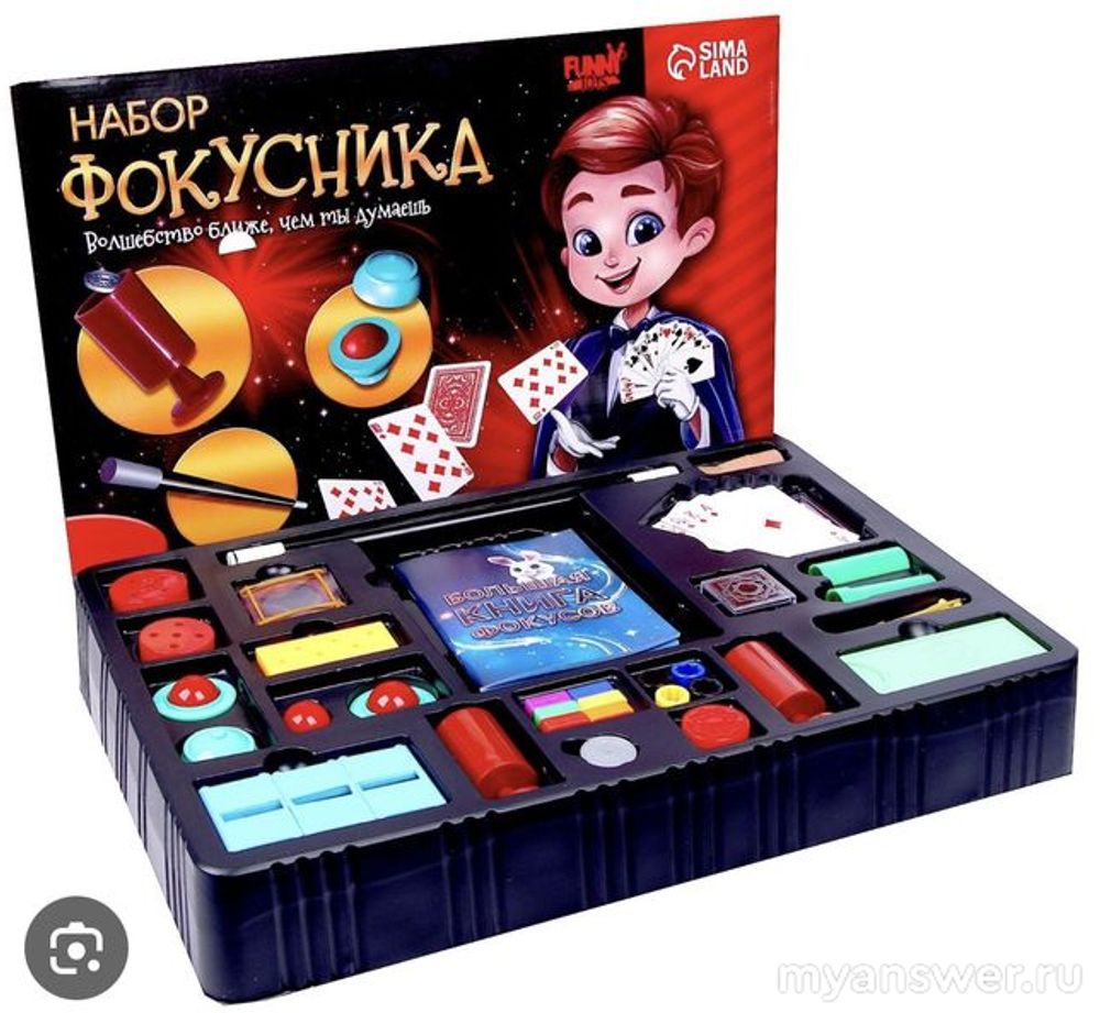 Например наборы опытов, раскопки из гипса, набор фокусника, настольные игры.