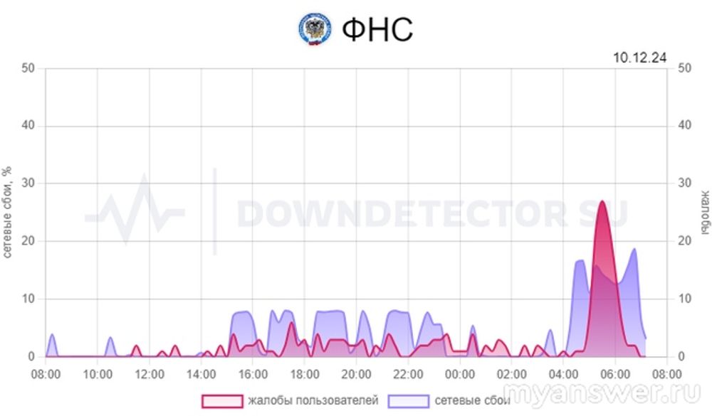 Перед этим, естественно, скачок был сетевых по ФНС проблем, довольно такой он не хилый. Интересно, это скачок, скорее всего, не DDOS-атаки, но уже не первые числа месяца, когда перегруз бывает серверов, скорее всего, все же техработы сейчас на ФНС.