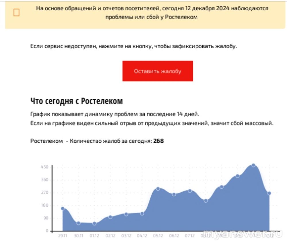 У некоторых пользователей не работает Ростелеком 12 декабря 2024 года.