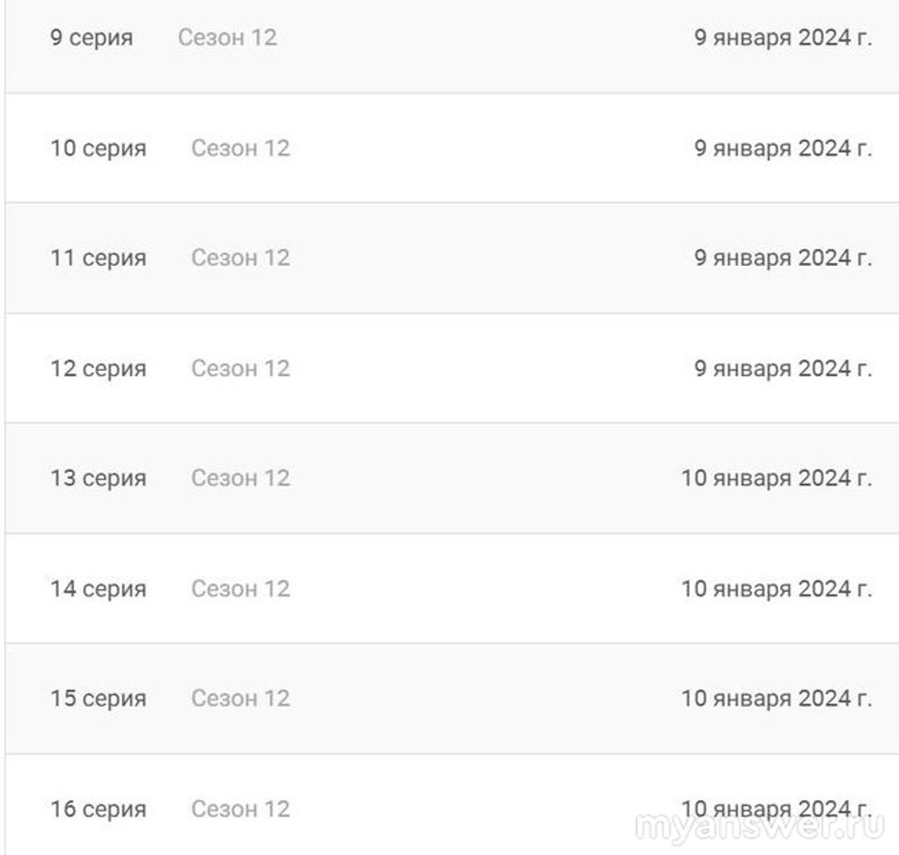 А на телеканале Россия-1, как мы видим, 12-й сезон сериала выйдет не раньше 3 февраля. И тогда его смогут посмотреть все желающие.