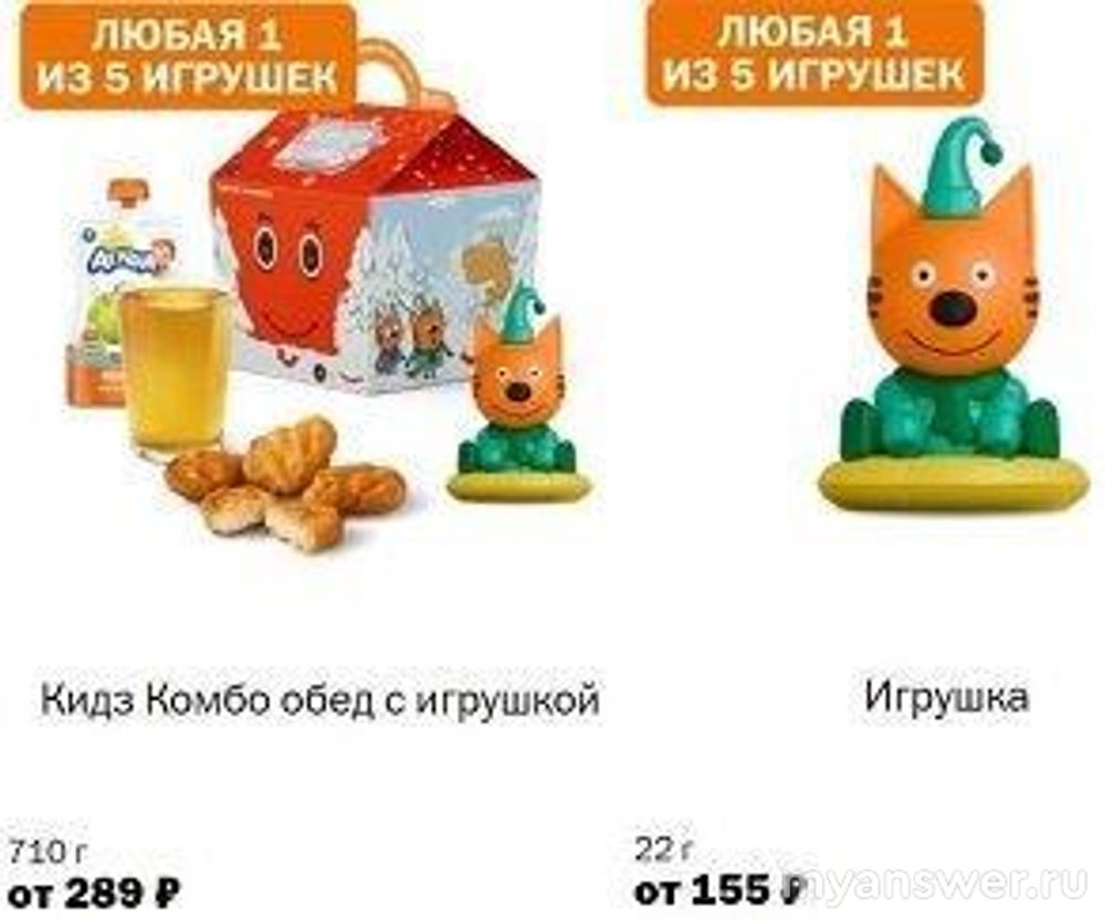 Их можно купить отдельно (155 руб.) или собрать детский обед Кидз Комбо (289 руб.), куда входит одна игрушка.