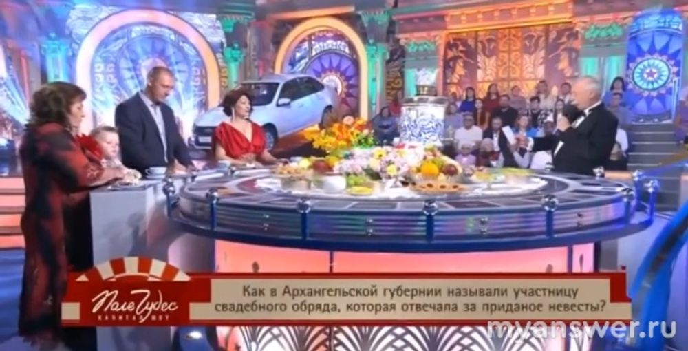 Второй тройке игроков задали вопрос о женщине, которая на свадьбе отвечала за приданое невесты.