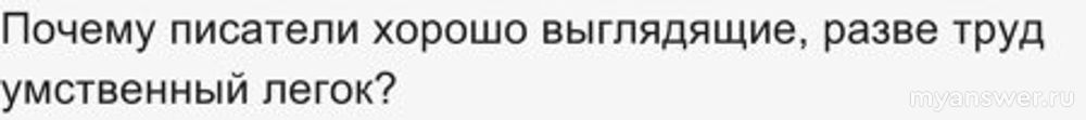 Это упешные, а не какие-нибудь, писатели могут быть холеными, ну, а как же - внимание публики/критиков, хорошие тиражи издаваемых книг, все это способствует хорошему настроению/аппетиту, ну, и за собой уход можно делать неплохой. Для них, труд умственный и в самом деле легок. Почему? Талант, который был уже дан и немного труда для его развития. При этом, талант не обязательно, что к бумагомарательству, зачастую, он то как-раз и не особо нужен. Тут важен иной талант - себя подать, в тусовку нужную вписаться, рекламу тискать хорошую, уметь обласкать вышестоящих так, чтобы быть ими принятым. Если бы все авторы были бы в одинаковых условиях, то холеных писателей бы не было вовсе, просто было бы больше зарабатывающих писателей, у корыта было бы гуще, а то ведь оттирают оттуда практически всех. Кто остался, те становятся холеными:)