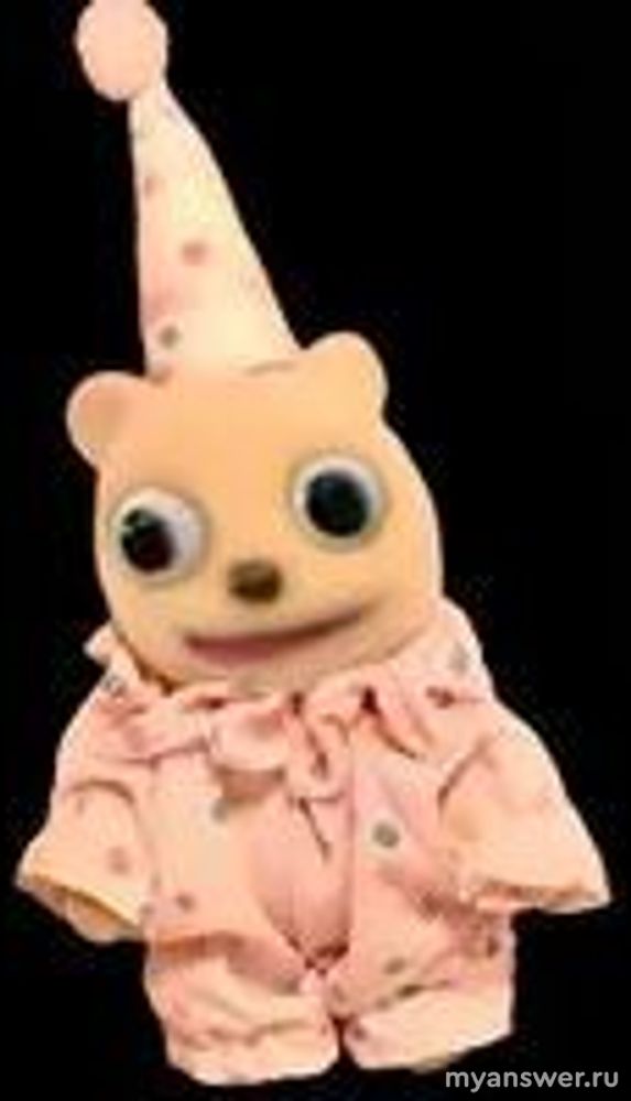 Прикольный такой, в пижамке розоватой и подобного цвета колпаке, медвежонок, который, собственно и говорит эту вот, довольно зловещую надо сказать, фразу. Выглядит он так: