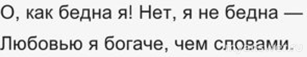 О, как бедна я! Нет, я не бедна любовью я богаче, чем словами.