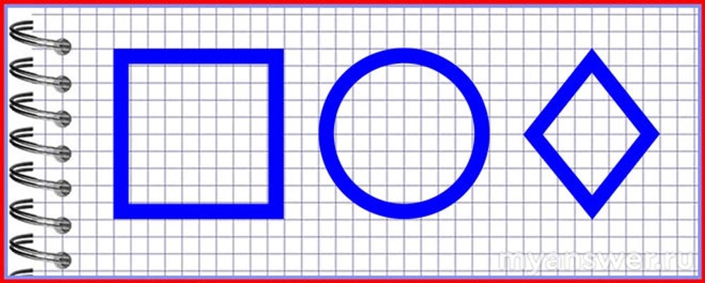 Представлены геометрические фигуры: квадрат, круг, ромб.
