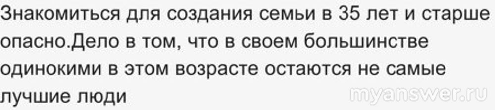 Знакомиться для создания семьи в 35 лет и старше опасно.Дело в том, что в своем большинстве одинокими в этом возрасте остаются не самые лучшие люди.Например, познакомились Вы с человеком, вроде ничего, и внешне хорош, но вот стали жить вместе, и начали вылазить скелеты из шкафа. То есть, у одинокого человека после 30 почти всегда могут быть скрытые или явные косяки.Как тогда быть? Ну, в таких случаях нужно знакомиться через общих знакомых, чтобы эти общие знакомые могли Вам объяснить, что это за человек. А если вдруг встретите недавнего вдовца, который жил благополучной семейной жизнью, то это будет для Вас везением. Вот только таких вдовцов ушлые дамы быстро к рукам прибирают.