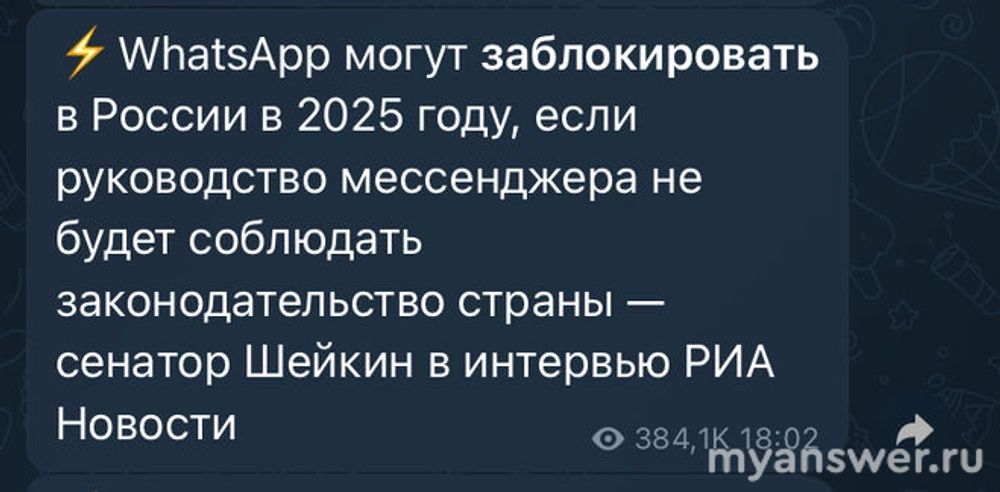 Так что в 2025 году вполне возможно ограничат работу Ватсап на территории РФ.