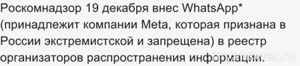 Поскольку WhatsApp принадлежит компании, признанной экстремистской организацией в России, то блокировка Ватсапа - явно вопрос времени.