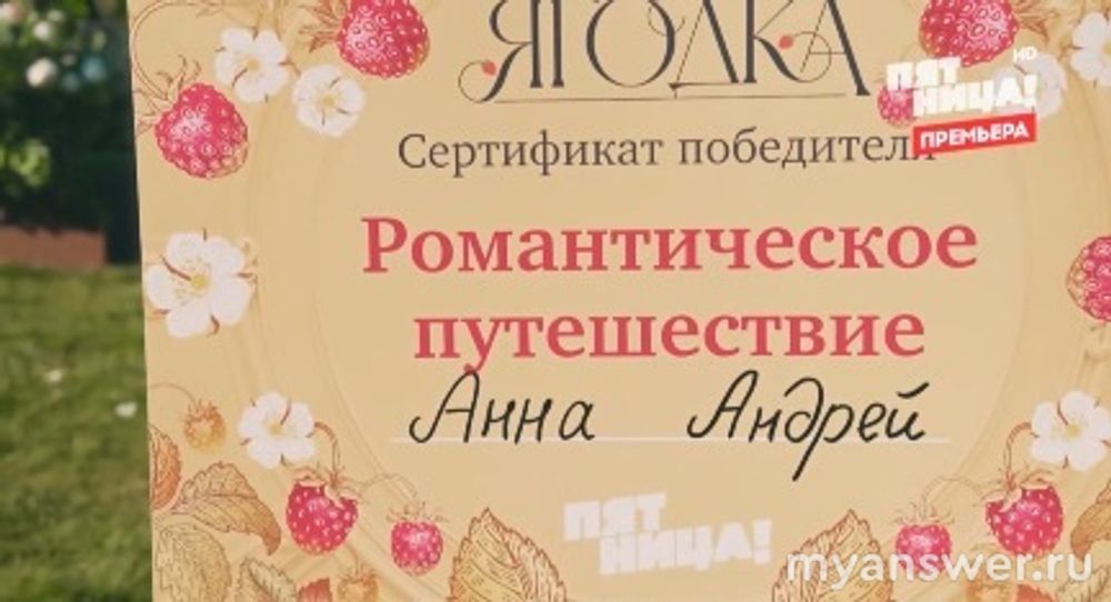Кто туда отправится решали бывшие постояльцы Дома отдыха Ягодка вместе с детьми, которые в полном составе пришли на торжество. После обмена пар кольцами, состоялось голосование, где подавляющее большинство выбрало Андрея и Анну, так как посчитали эта пару искренней, у которой, действительно, может получиться совместное будущее.