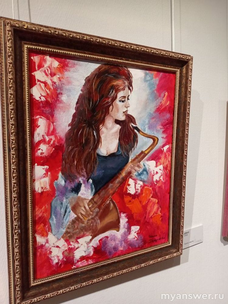 Ответ на вопрос: дама на картине «Саксофонистка» играет на саксофоне.