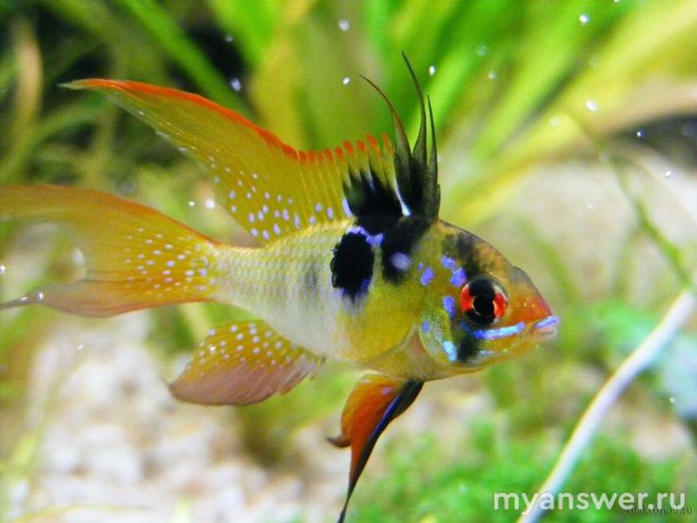 Помпон - тоже нередкая обитательница аквариумов, с помпоном на лбу