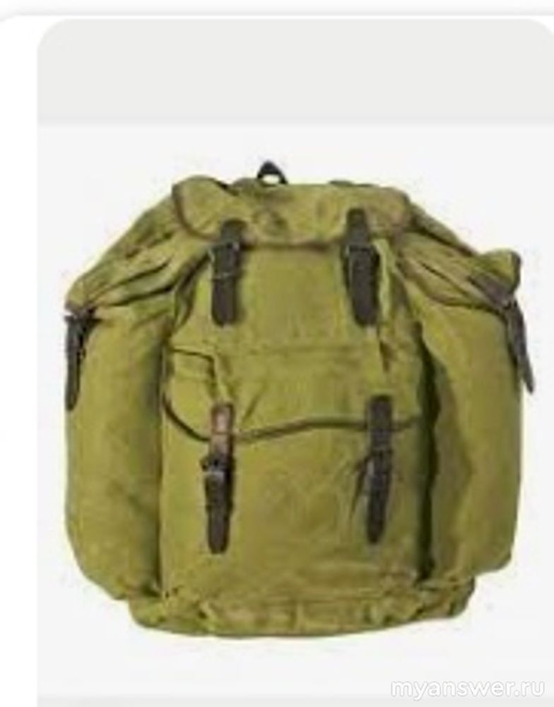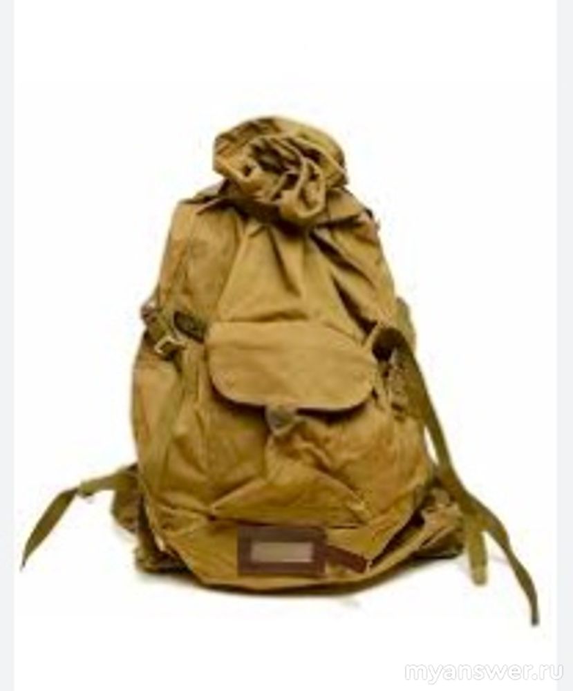 На фото вещевой мешок. Изготовлен из брезентовой непромокаемой ткани. Чаще всего используется в снаряжении и обмундировании войск.