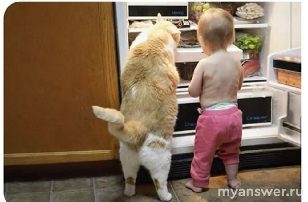 Но и конечно подобные явления происходят у любителей животных, в семьях которых проживают такие питомцы как собаки и кошки (они тоже умные и сообразительные, и способны не только открывать холодильник, но и после ещё и закрыть его, как бы заметая следы).