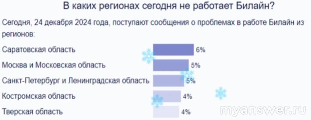 Меня лично, вообще, не удивляет, что данные сервисы Билайна работают некорректно. У него довольно-таки большая зона покрытия имеется, по этой причине и технические неполадки возможны. Был бы он мобильным оператором и провайдером одного города, проблем в разы меньше бы было. Двадцать четвертого декабря люди начали жаловаться на перебои в работе мобильной связи, неполадки с домашним интернетом и телевидением. Пик подобных жалоб пришелся на тринадцать часов по Москве, когда сразу девятнадцать человек о проблемах заявили: