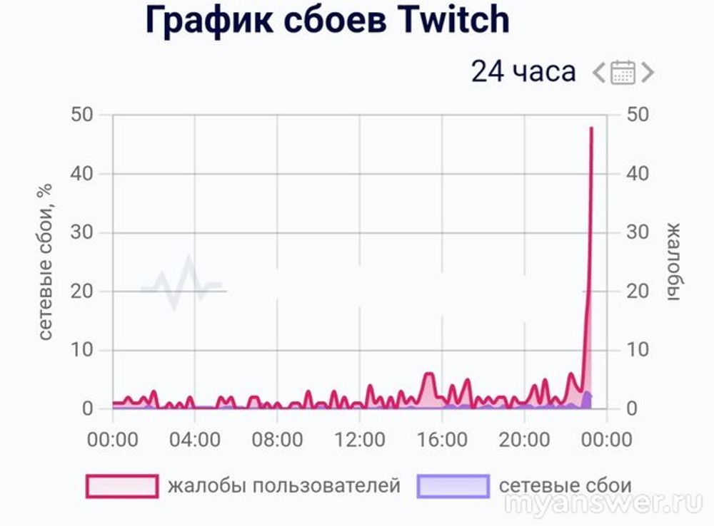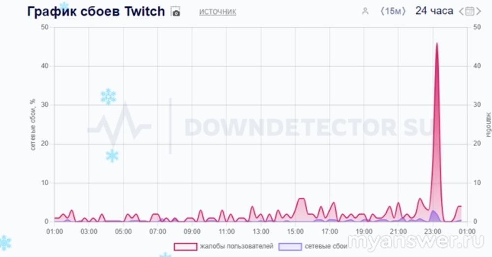 Ближе к полуночи с наступлением 24 декабря 2024 года стали резко нарастать жалобы на работу платформы Твич.