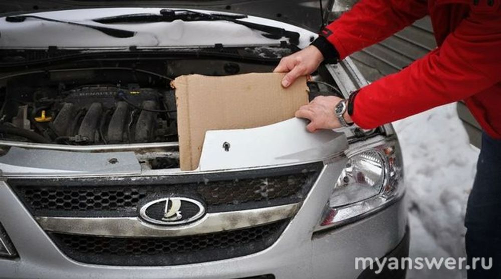 Но, картонки ставят уже редко, предпочитают что ни будь получше и по красивей, у меня вот на машине стоит ветрозащита из современного утеплителя.