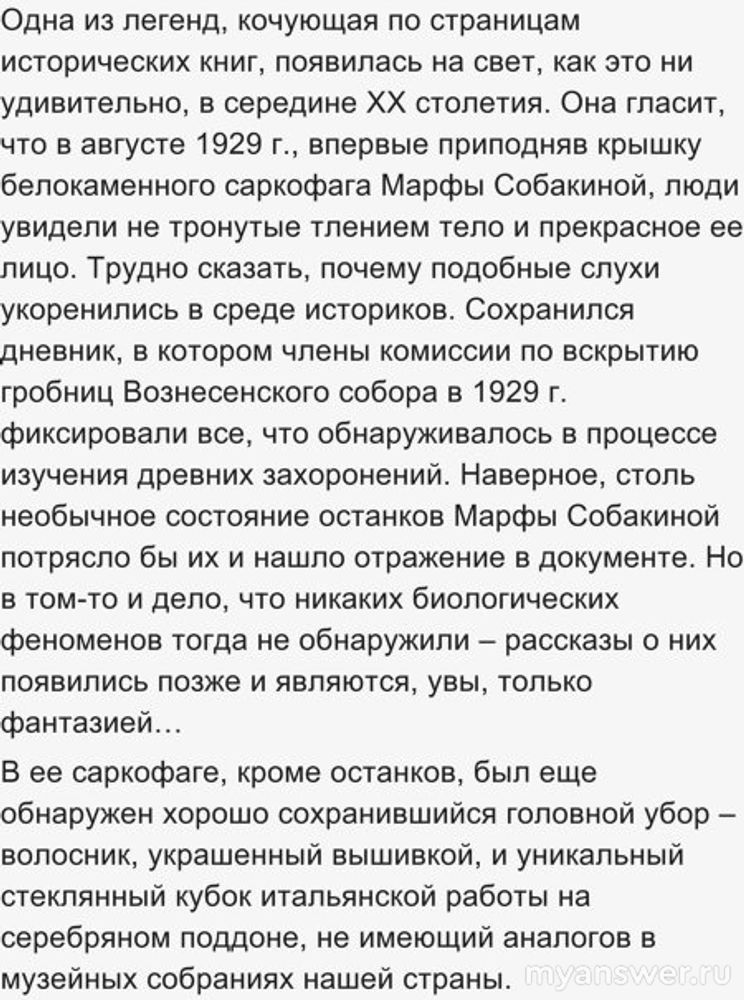 Тело третьей жены Ивана Грозного, пролежав в гробу 360 лет, не истлело, было только бледным.