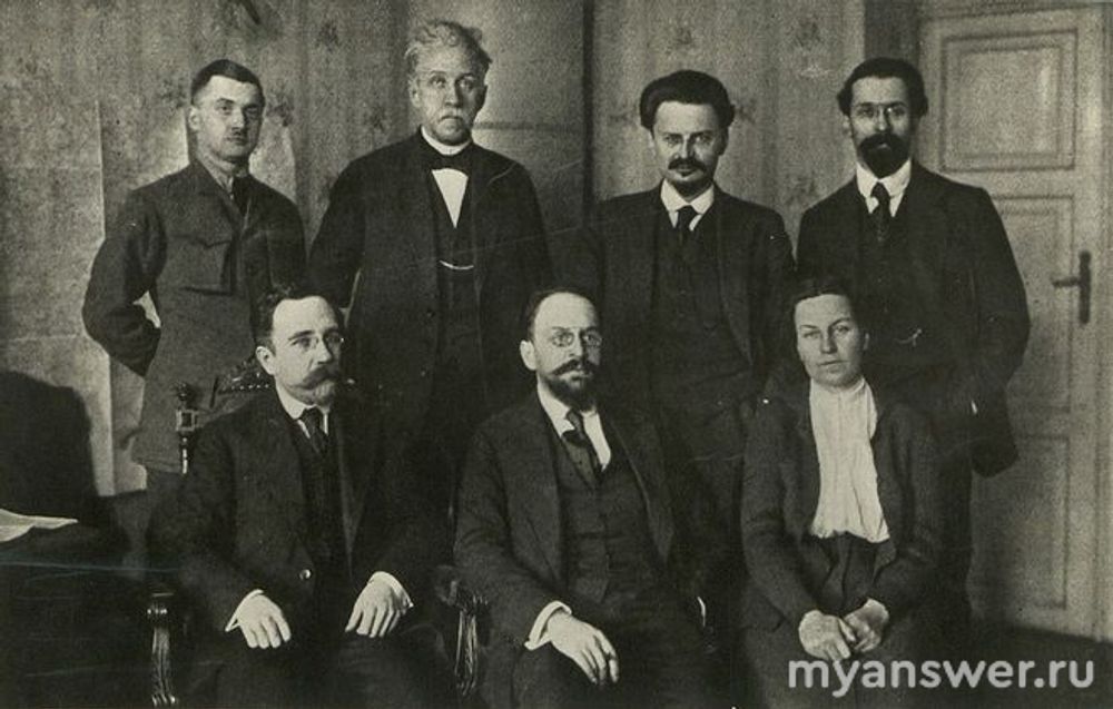 Рядом с Адольфом Иоффе запечатлена бывшая террористка из партии эсеров Анастасия Алексеевна Биценко. Сомнительного рода известность ей принесло убийство героя Плевны и бывшего военного министра царского правительства генерал-адъютанта Виктора Викторовича Сахарова. В ноябре 1905 года, по заданию эсеров-боевиков, Биценко явилась к генералу с неким прошением и была принята с почтением. Пока Виктор Сахаров вникал в суть написанного, злобная барышня четырежды в упор выстрелила в него из револьвера. Спустя несколько минут генерал скончался.