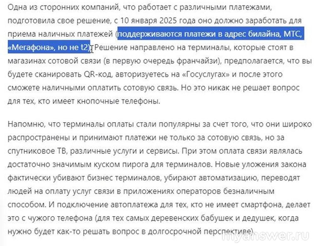 Казалось бы, на первый взгляд, ответ на вопрос очевидный и простой - пойти в отделение своего банка и оплатить мобильную связь через банкомат, куда уж проще? Но у нас страна самая большая в Мире и не везде есть банкоматы, а ещё появился Закон об оплате мобильной связи в России, который говорит об обязательном наличии паспорта при оплате мобильной связи. Прочитал сейчас статью в Дзене о том, как оплата происходит в деревнях. Там говорится о том, что пополнить баланс мобильного телефона с 1-го января 2025 года будет невозможно без предъявления паспорта- ну надо же, люди именно что-то оплачивают, отдавая свои деньги и им создают проблемы. Приведу несколько скриншотов: