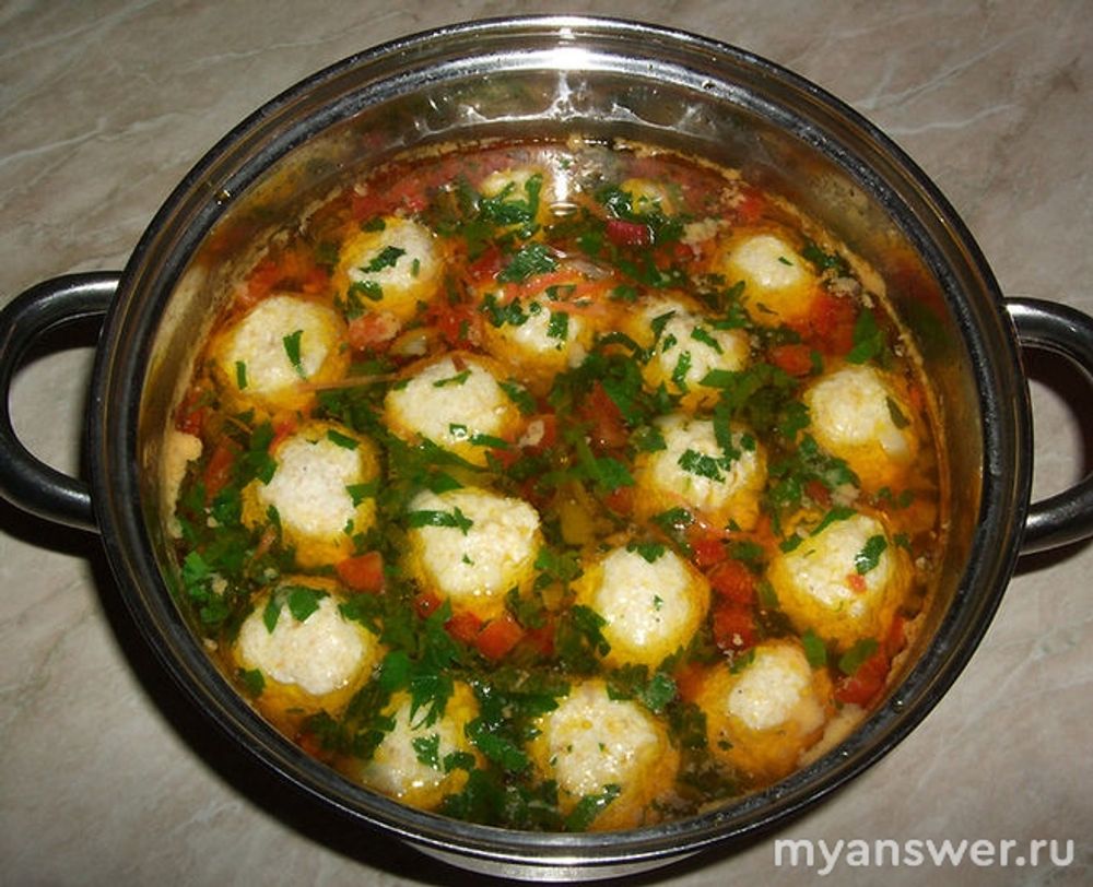 То есть маленькие мясные шарики из качественного нежирного мясного фарша. Их (как и пельмени) нужно опустить в кипяток и сварить. Они сами по себе быстро дают нежирный и диетический по усваиванию бульон. Они варятся быстро, поэтом почти одновременно в кипящую воду следует положить овощи: лук, морковь и картошку. В принципе, можно добавить и рис или какую-то лапшу или рожки.