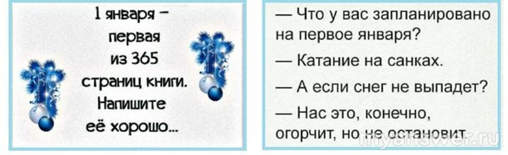 Вот это и, может быть, что-нибудь ещё надо успеть сделать 1-го января: в этот самый многообещающий день в году!