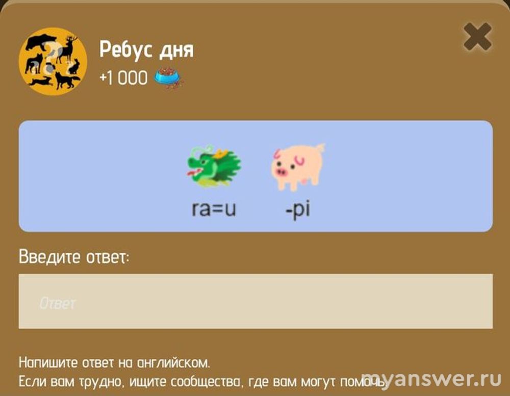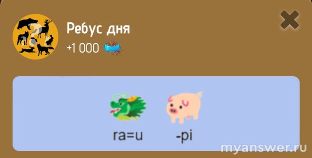 Вновь игра Zoo из телеграмма. Не забывайте кормить животных и разгадывать ребус, что бы получить дополнительный корм. Сегодня ребус выглядит вот так: