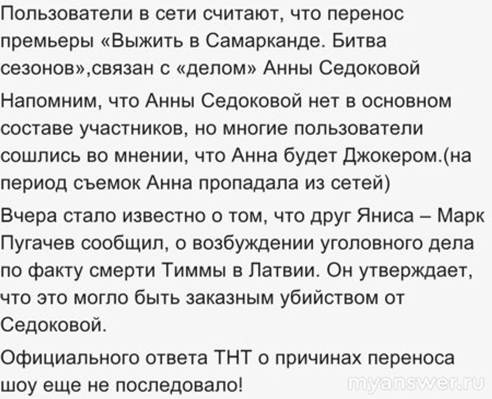 В связи с отменой ранее анонсированной на ТНТ премьеры нового сезона шоу "Выжить в Самарканде. Игра сезонов" и отсутствием комментариев по этому поводу со стороны ТНТ в сети возникают различные версии.